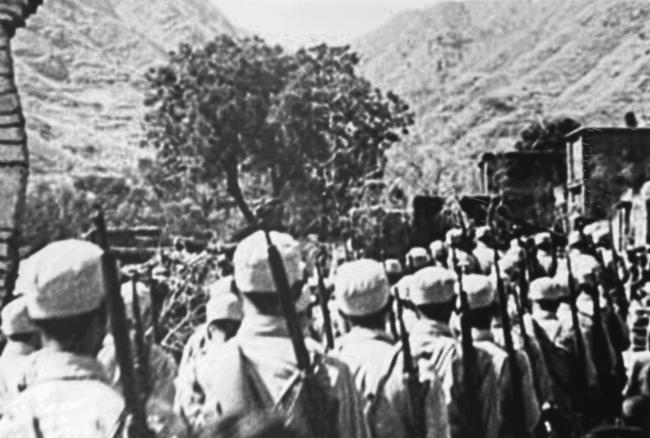 行进中的八路军山东人民抗日游击队第四支队