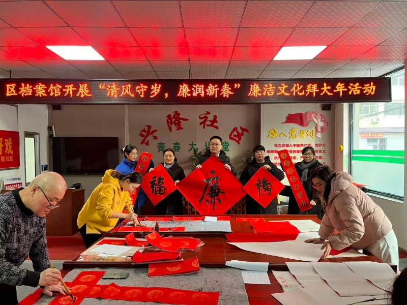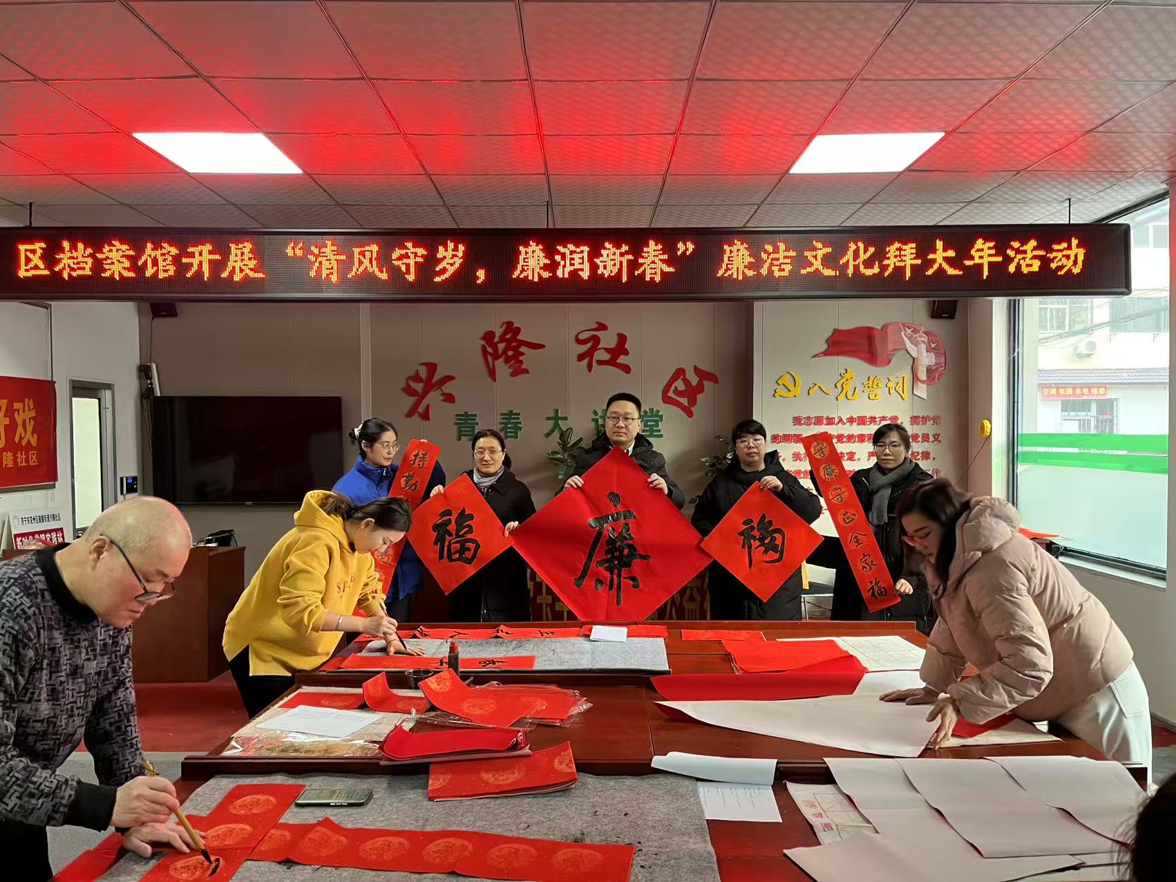 为深入贯彻落实区纪委《关于开展“清风守岁廉润新春”廉洁文化拜大年活动的通知》精神,进一步弘扬清廉风尚、营造风清气正的节日氛围,近日,区档案馆高度重视、精心组织,联合鼓楼街道兴隆社区开展“清风守岁 廉润新春”廉洁文化拜大年活动,将廉洁元素融入传统年俗,为居民群众送去新春祝福,传递清廉理念。